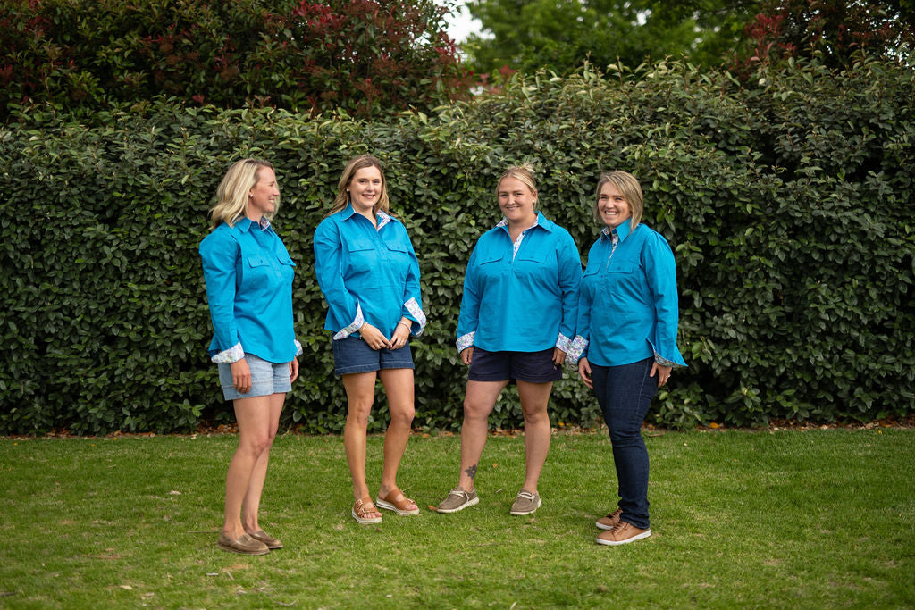 These shirts are your typical work shirt, made of high-quality cotton, tough but comfortable. With long sleeves, high collars, buttoned cuffs, they are everything you need in your daily uniform & best of all - they are breastfeeding friendly.